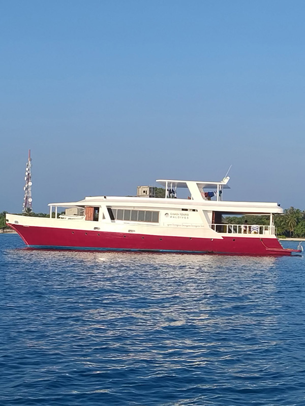 The Salvora is designed in a traditional Maldivian style, the boat is 26m in length and 8m at its width. The hull is built of wood and finished with a fiberglass exterior. It was designed by Government licensed local Engineers, combined with Boat building experts to make it suit in the water territory of Maldives for all natural conditions in accordance with the safety precaution by concerned local authorities.