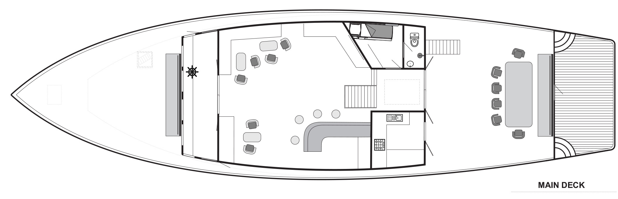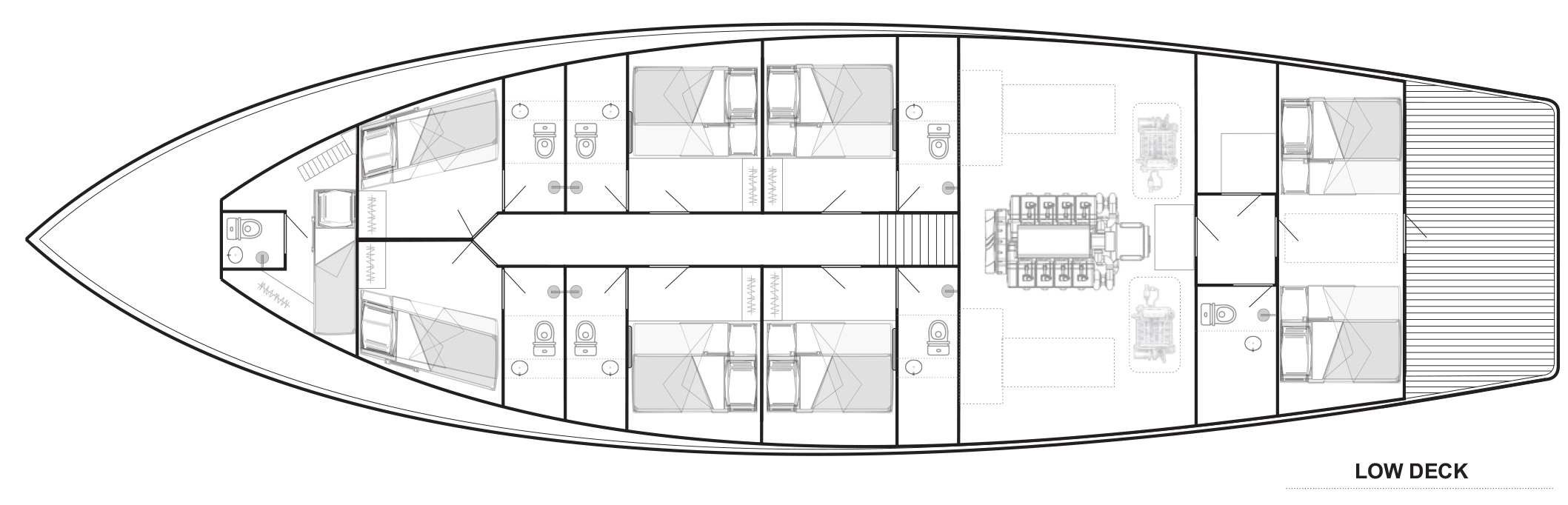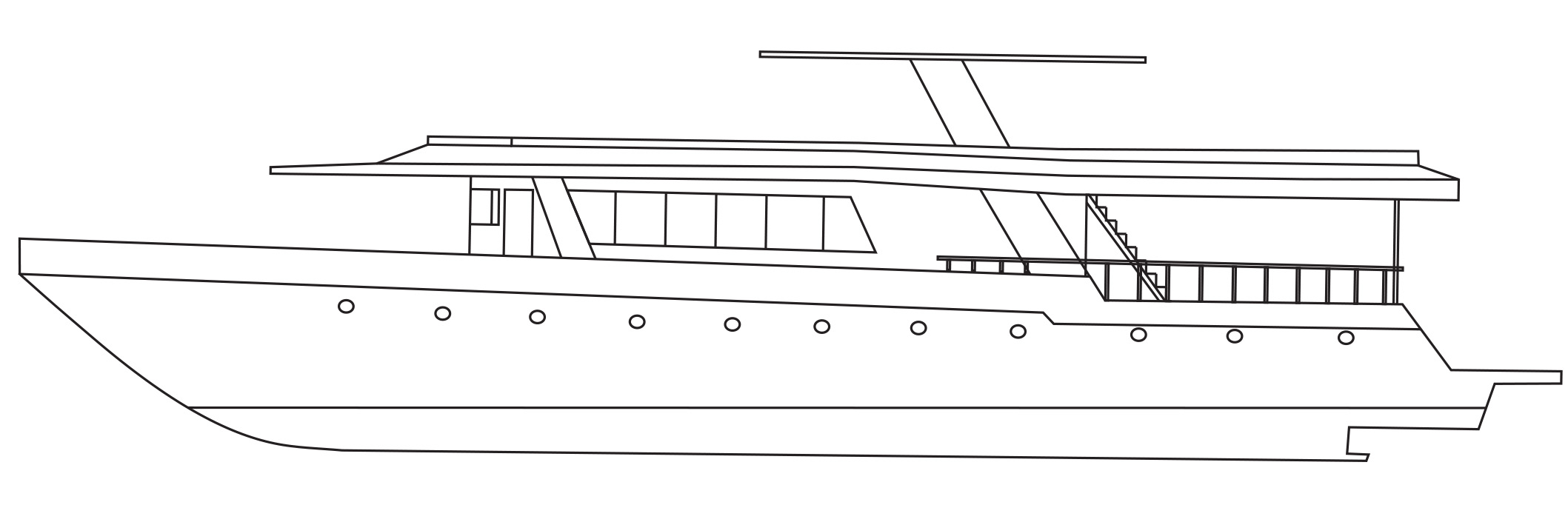 This Safari Vessel will provide 6 luxurious bed rooms of approximately 12 sq.metres each. All of these cabins are fully air conditioned and have attached toilets and showers with hot and cold water available at all times. There is a separate private room for dive instructors or surf guides with all facilities as guest rooms.